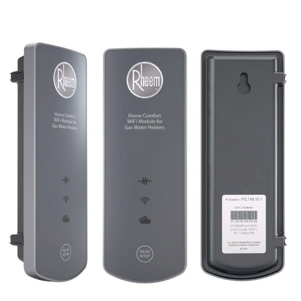 Select Rheem Gas Water Heaters (sold separately) include first-of-its-kind Wi-Fi functionality when paired with this EcoNet Wi-Fi Module. Using Rheem's exclusive EcoNet technology and your wireless broadband Internet connection, you'll receive important alerts and notifications about your water heater -including leak detection alerts-straight to your mobile device. Set the cost-saving Vacation Mode and adjust the water heater temperature set point from your mobile device through the free Rheem EcoNet App or our mobile-friendly web portal. The Rheem EcoNet App is available on the App Store for Apple iPhone, iPad and iPod users, and Google Play for Android users.