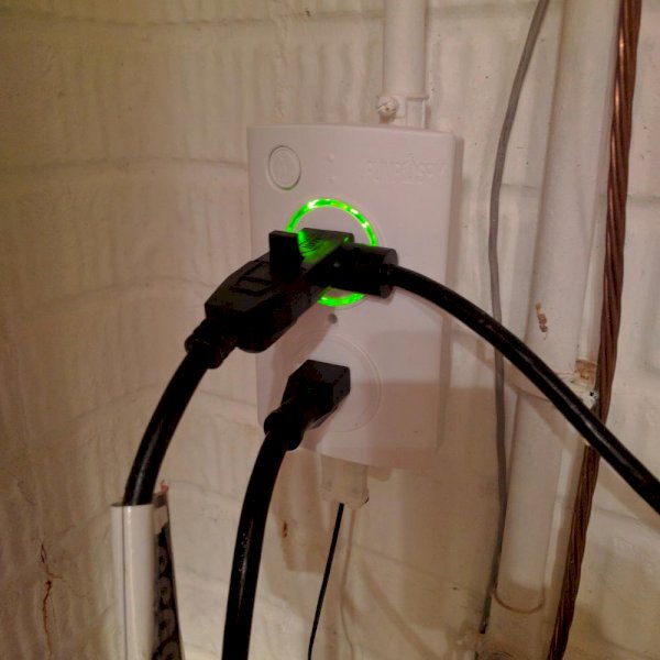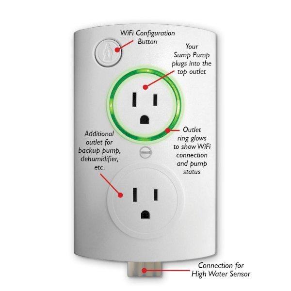 Most homeowners discover that their sump pump has a problem when the basement is already flooded. PumpSpy's Sump Pump Smart Outlet contacts homeowners that their sump pump has a problem BEFORE flooding can occur. The Sump Pump Smart Outlet connects to the free PumpSpy Monitoring Service that constantly watches your sump pump automatically, 24/7. The PumpSpy Sump Pump Smart Outlet works with any 120-Volt sump pump. Simply connect the Smart Outlet to your Wi-Fi network and plug in your sump pump. PumpSpy's computers will automatically track incoming data from your sump pump and check that the pump is working properly. If any issues are detected, PumpSpy automatically sends out text messages, emails and app alerts. Download the FREE PumpSpy App to receive reports, alerts and check your sump pump anytime, anywhere. The PumpSpy Sump Pump Smart Outlet includes: Smart Outlet, screw, high water sensor, mounting bracket and installation guide. Wi-Fi network required. Protect your basement from flooding with the PumpSpy Sump Pump Smart Outlet.