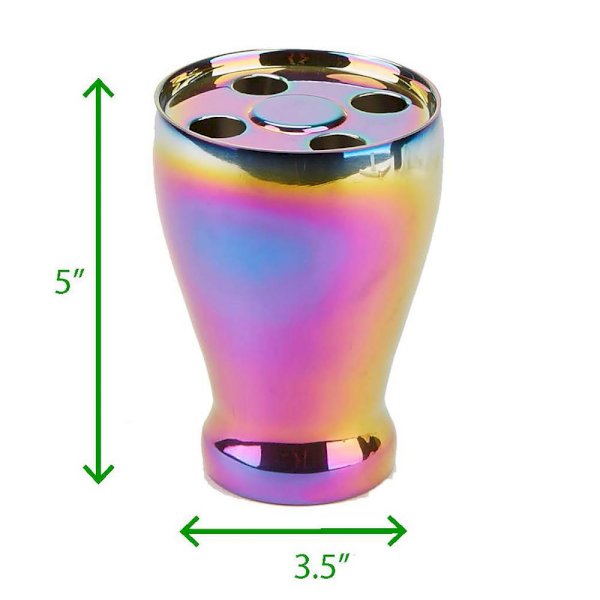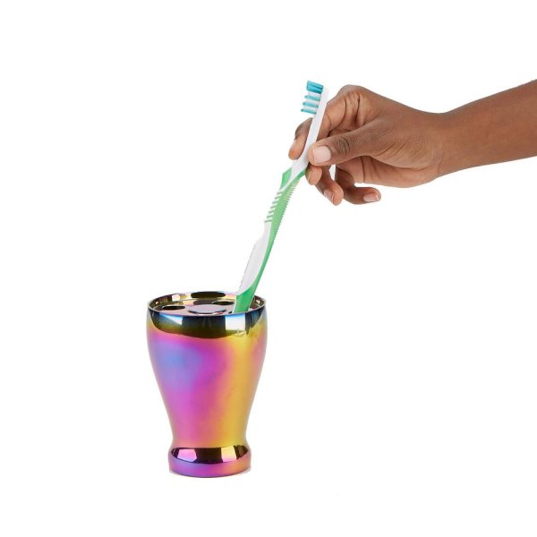 The Mind Reader Iridescent Rainbow Toothbrush Holder has 4 openings for toothbrushes. Serves as a beautiful display in your bathroom, kitchen, bedroom and other places of your home or office. Mix and match with the other Mind Reader Iridescent pieces for a complete collection of the stylish rainbow design.