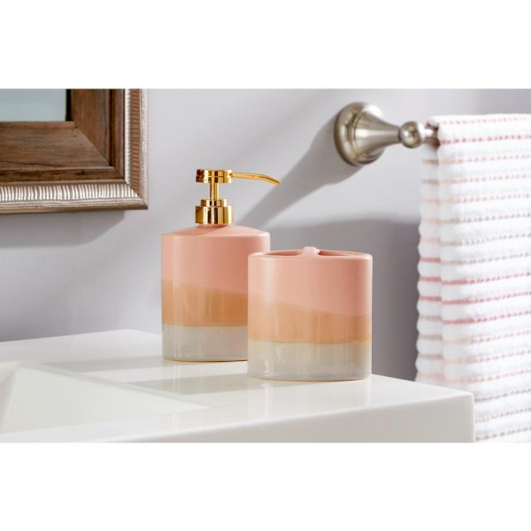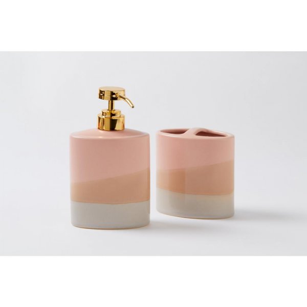 True We love the Alanya toothbrush holder and you will too. Blush and neutral tones stack to create a sandy dune-inspired appearance that is sure to bring a new element to your bath decor. Pair with the Alanya lotion pump to complete the look.