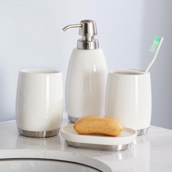 Add style to your bathroom decor with the clean, simple lines and classic look of the Ari bathroom collection. Update any bathroom with the brushed nickel accents and gloss glaze finish of the Ari toothbrush holder. Shop the complete Ari collection for a handsome addition to refresh any bathroom.