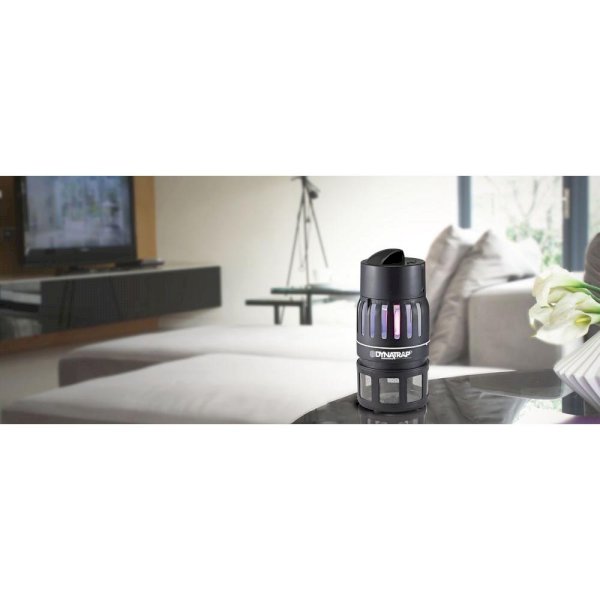 The Dynatrap portable 1000 sq. ft. Indoors Insect Trap attracts and kills mosquitoes and other nuisance flying insects, including pantry moths, flies and Asian beetles. This insect trap is engineered for 3-way protection. First, a UV fluorescent bulb generates a warm light, attracting insects. Then, an exclusive Ti02 titanium dioxide-coated surface produces CO2 that's irresistible to mosquitoes. Third, a powerful yet whisper-quiet vacuum fan sucks insects into the retaining cage where they dehydrate and die. The trap weighs less than 3 lbs. and is about the size of a large thermos, enabling easy portability from room to room and an inconspicuous set-up. A unique twist on/off feature ensures that any insects still alive in the retaining cage will not escape when the trap is turned off.