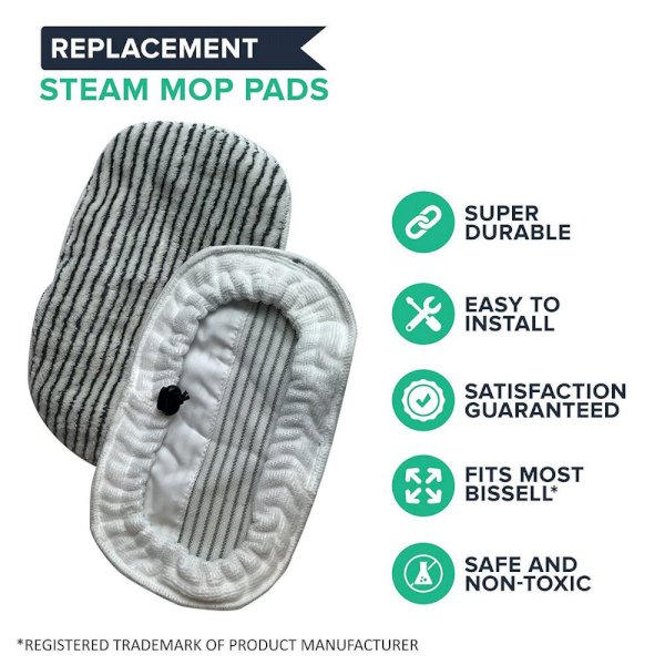2 High quality washable and reusable replacement Bissell Zebra print deluxe microfiber steam mop pad. Perfect for cleaning hard floor surfaces effortlessly without leaving any marks or scratches. Absolutely essential for allergy sufferers.