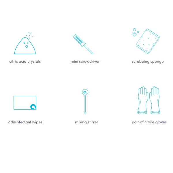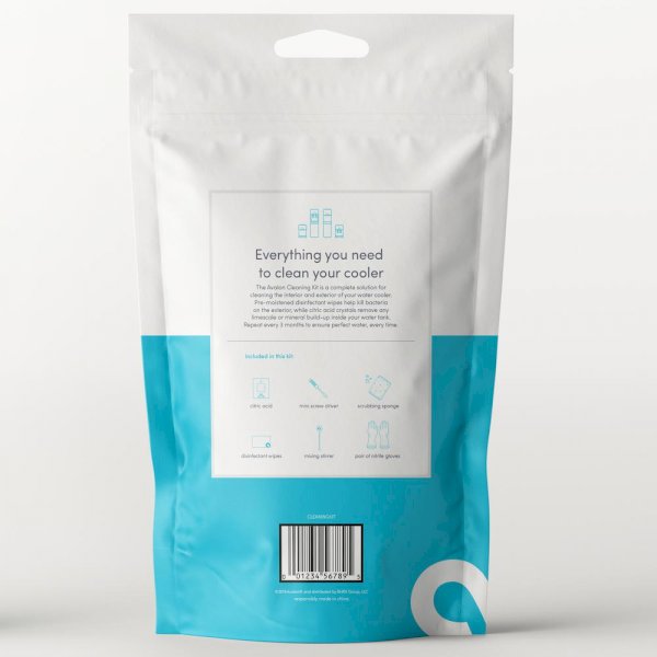The Avalon Cleaning Kit is a complete solution for cleaning the interior and exterior of your Avalon or any brand water cooler. Pre-moistened disinfectant wipes help kill bacteria on the exterior, while citric acid crystals remove any limescale or mineral build-up inside your water tank. Repeat every 3 to 6 months to ensure perfect water, every time. The kit includes: 200 g of citric acid crystals, mini screw driver, pair of nitrile gloves, 2 disinfectant wipes, scrubbing sponge, and a mixing stirrer.