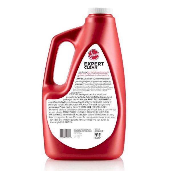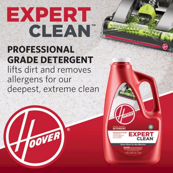 Hoover's Expert Clean Detergent has professional grade strength to ensure removal of deep-down dirt and grime from carpets and upholstery. Compatible for use with any Carpet Cleaner or Spot Remover. The large 128 oz. bottle provides enough detergent for multiple uses.