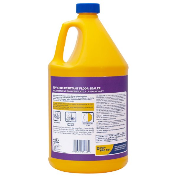 Zep Stain-Resistant Floor Sealer is an important step in the Zep 4-Step Pro Floor Maintenance System. The floor sealant is used before applying floor polish to enhance the gloss, polish longevity and stain resistance. Zep floor sealer suits unfinished vinyl, rubber, terrazzo, and unfinished concrete surfaces. Clear coating resists stains from everyday spills like food, drink and tracked dirt. This product is not a stand-alone sealer.