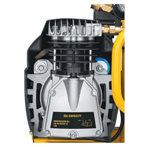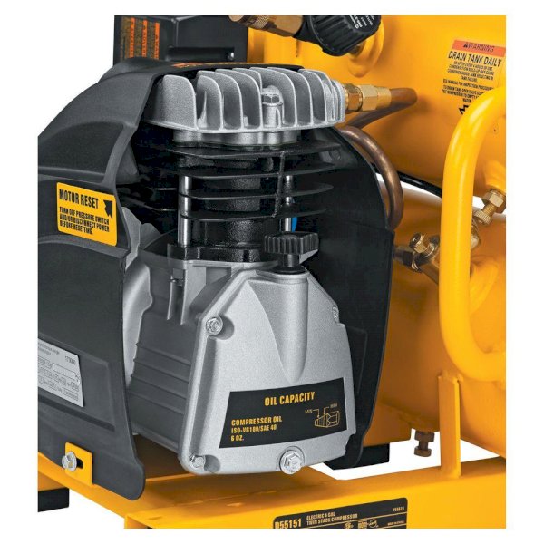 The DEWALT D55151 compressor has a lightweight design for easy use. And handling in a variety of orientations. Dual soft start valves assist in cold weather start-up. Backed by a DEWALT 1-year Warranty for added peace of mind.