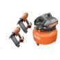 RIDGID introduces the 6 Gal. Portable Electric Pancake Air Compressor with 18-Gauge 2-1/8 in. Brad Nailer Combo with (2) Brad Nailers. This powerful compressor is perfect for trim and finish work with 150 PSI. Work with multiple people on the job site with dual universal quick connectors and use 2 nailers at once. Equipped with a Best-in-Class oil-free pump for reliable, maintenance-free performance, this compressor has everything you need to get the job done. The RIDGID 18-Gauge 2-1/8 in. Brad Nailer Combo features an industry leading feature set with FASTEN EDGE Technology with 2 nailers. These nailers have a selectable trigger that can be set to contact or sequential fire. The magazine allows a wide range of fastener lengths, and the internal piston catch delivers consistent driving power. It is designed for clean operation and long life and equipped with no-mar pads that help prevent scuffing or damage to the work surface. Backed by the RIDGID 3-Year Manufacturer's Warranty, this compressor includes an electric cord and an operator's manual. The RIDGID 18-Gauge 2-1/8 in. Brad Nailer Combo is backed by the Industry Leading RIDGID Lifetime Service Agreement and includes two 18-Gauge 2-1/8 in. Brad Nailers, sample nails, and an operator's manual.