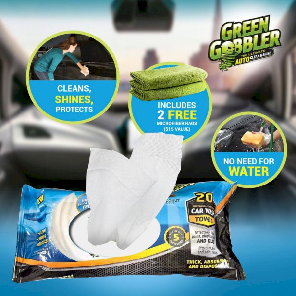 These Green Gobbler ultimate wash and shine towels Effectively clean paint, plastics, metals and glass. There is absolutely no need for water therefore saving time and making it possible to clean your automobiles from virtually anywhere. Easy to use instructions, environmentally friendly.