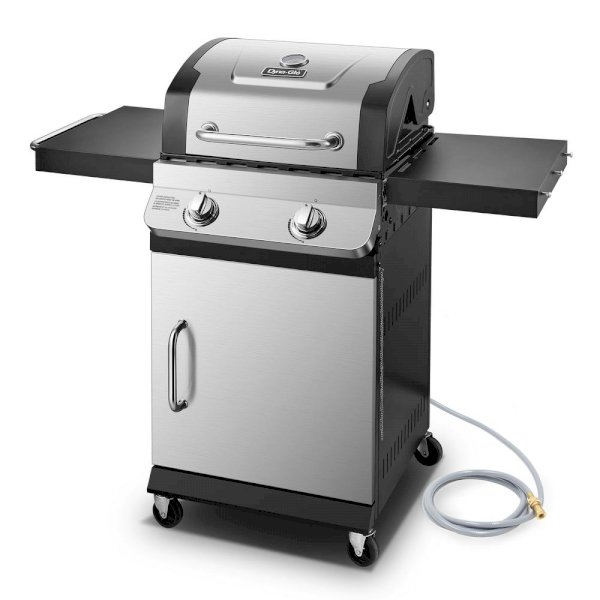 Whether your space is big or small, you can barbecue with the best of them with the 2 Burner Premier Natural Gas Grill from Dyna-Glo. The design is compact and the options are limitless with this grills impressive combination of cooking power, quality construction and features that simplify your grilling experience. With optimal cooking space and heating power, you can sear steaks, veggies and brats for everyone at your house. The easy-to-use integrated ignition system makes start-ups a breeze. Achieve restaurant-quality sear marks when you cook on this grills cast iron cooking grates. Move your grill hassle-free to the ideal cooking spot or into storage with its 4 caster wheels. Upgrade your backyard or patio today with this sleek and powerful grill from Dyna-Glo and become the BBQ boss you were always meant to be.