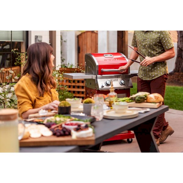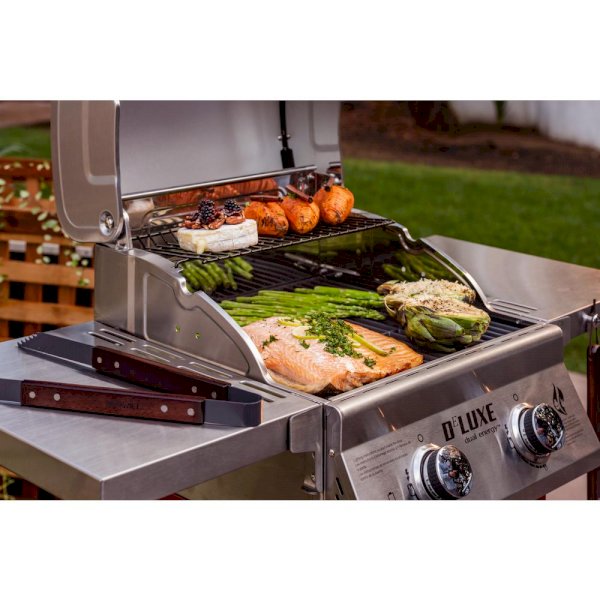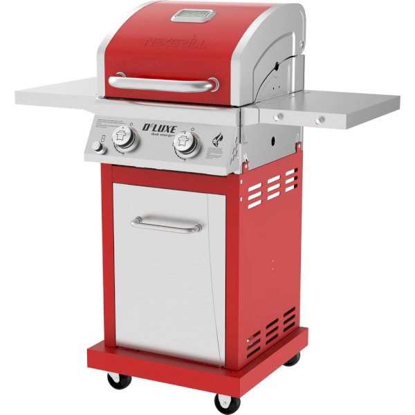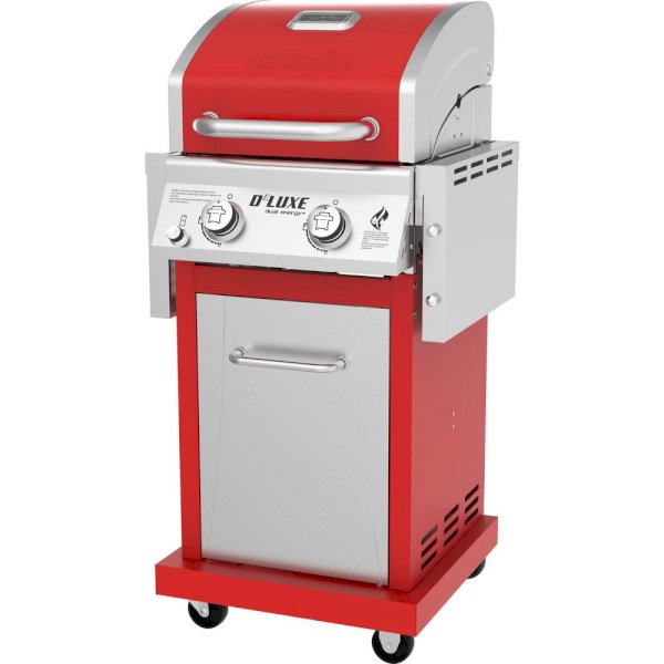 Enjoy grilling on this durable Nexgrill DeLuxe 2-Burner Propane Gas Grill. With duel energy capabilities, small footprint with foldable side shelves this grill is perfect for the griller who has limited space. The grill is built with polished stainless steel and porcelain coated steel and boasts 401.1 sq. in. cooking area. The firebox is equipped with 28,000 BTUs of cooking energy, 2 porcelain cast-iron cooking grids and a porcelain upper-level cooking rack. Our even heat cooking system includes stainless steel burners and angled flame tamers working concurrently to distribute consistent heat across the entire grill surface while minimizing flare-ups. Make your next grill a Nexgrill.