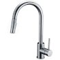 This minimalist pull-down kitchen faucet from Y Decor is sure to complement contemporary kitchen spaces. Crafted with modest detailing, the brass water way features a beautiful brushed nickel finish. The high spout of this faucet effortlessly clears large pots, while the pull-down spray head places the water exactly where you need it.