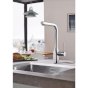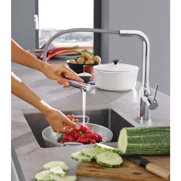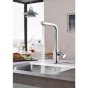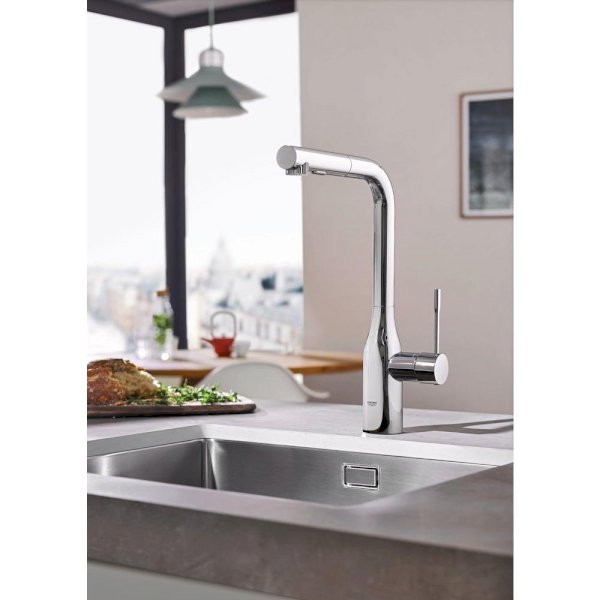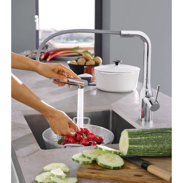 Clean lines and cylindrical modern design make the New Essence Pull-Out Dual Spray faucet the natural choice for today’s cosmopolitan kitchen. The extended comfort spout height embodies minimalist beauty in its purist form, while the new 28 mm cartridge allows for a sleeker, more refined body, the new integrated temperature limiter can be individually set to the desired maximum water temperature to prevent scalding. The durable and attractive StarLight finish ensures a scratch and tarnish-free surface for a lifetime.