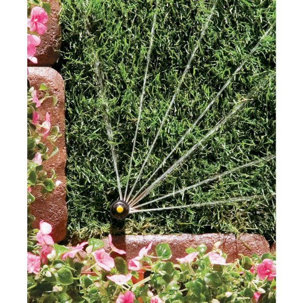 Rain Bird's 12SA rotary sprinklers provide highly uniform water distribution and an increased radius range of up to 18 ft., covering more area with fewer heads. At the same time, the sprinkler produces remarkably low precipitation rates of 0.6 in. per hour, reducing water use up to 30 percent. The secret is in the nozzle's rotary multi-stream action. The water delivery is gentle enough for newly seeded areas and hillsides, yet covers more area than standard pop-up sprays. The extended throw also allows you to use fewer heads per zone to reduce system complexity. And the 12SA nozzle's water droplets are larger than traditional sprinkler droplets, resisting windblown overspray. The 12SA is easy to adjust: simply use a standard slotted screwdriver to adjust the throw distance from 13 to 18 ft. Other features include a 4-in. pop-up height; a protected closed-case design that makes these sprinklers ideal for "creeping" grasses, sandy soil, and other harsh surroundings; and a water-lubricated rotating stream operation that's quiet and maintenance-free. This version of the 12SA produces a full-coverage pattern; the 12SA is also available in full and half patterns.