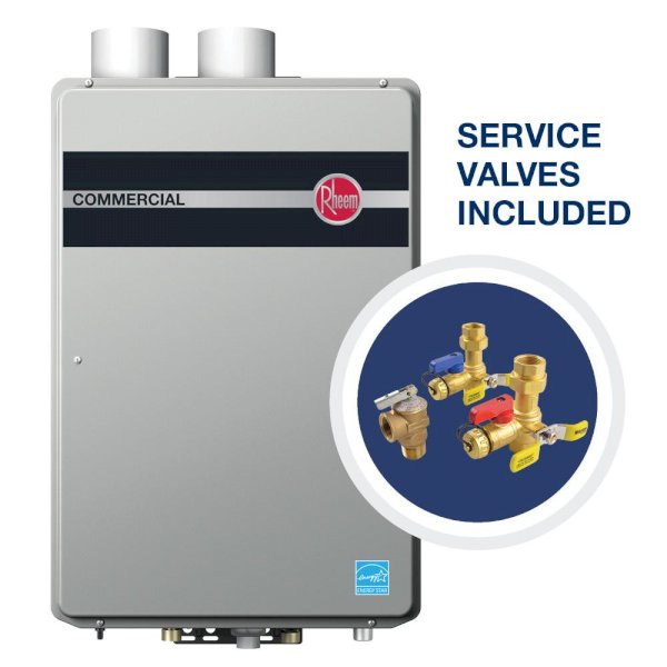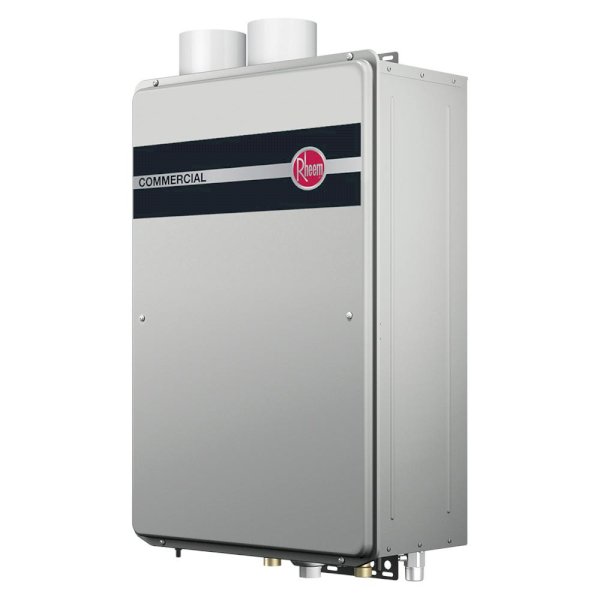 Perfect for hotels, restaurants, offices and other businesses, this Rheem Commercial Condensing Tankless Water Heater provides energy savings through a high 96% Thermal Efficiency and design that heats water only when it is needed. Rheem Tankless Water Heaters are preferred by contractors and are full of features that can help save on installation. They heat water as high as 185F, are backed by a 5-year heat exchanger and parts warranty with 1-year labor warranty and the Rheem Tankless Support Team is ready to help because we know uptime is important to businesses. For added peace of mind, consider pairing with an additional tankless unit so your business stays up and running with hot water no matter what. PLEASE NOTE: This model is compatible with Schedule 40 PVC venting.