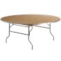 This heavy duty folding table is as good as it gets. This 72 in. Round Folding Table has a 0.75 in. thick plywood top and features an extremely durable Birchwood, hardwood surface with thick aluminum metal edging. This folding table is certain to withstand the test of time. Two extra-wide bolted wood runners are fastened to the underside and designed to allow for safe table stacking. The runners are secured to the table tops with flush fitting, flat head bolts and locking nuts. The heavy duty locking wishbone legs are constructed of 1 in., 15-Gauge tubular steel and commercial grade powder coating.