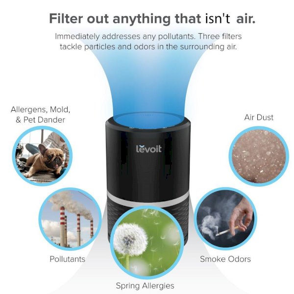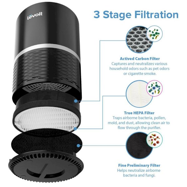 Whether in your living room, atop a small nightstand, or right next to you at your work, let the LEVOIT LV-H132 Purifier do its work, choose from low, medium, or high fan speed settings. Three stages of filtration (Fine Preliminary, True HEPA, Activated Carbon filters) tackle 99.97% of particles and odors. Enjoy a cleaned-up breathing space all around it, and sit back knowing there’s a 2-year warranty that comes with lifetime support from Levoit customer service.