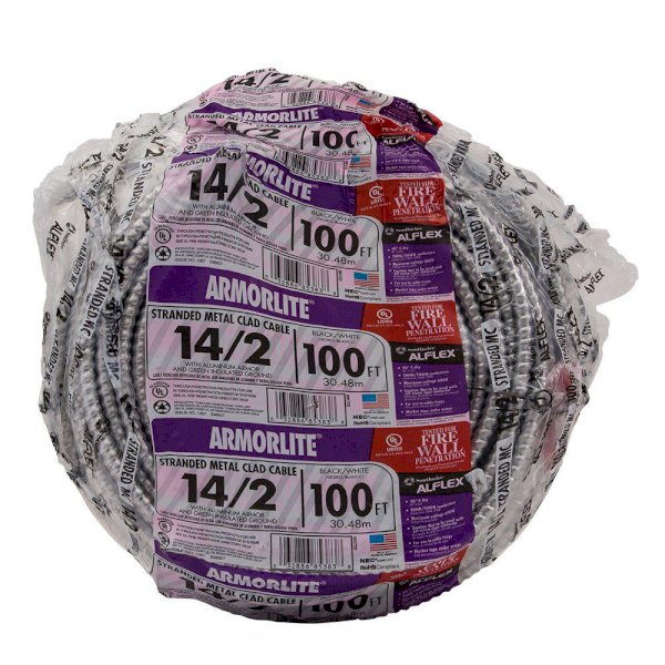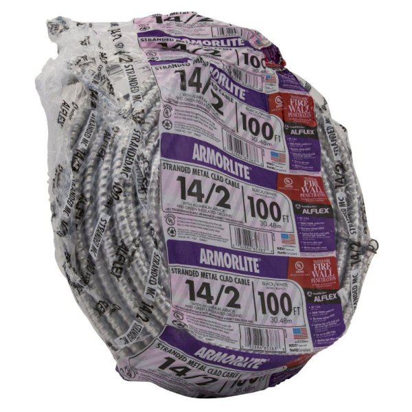 The Southwire Armorlite 100 ft. 14/2 Metal Clad Cable can be installed in indoor and outdoor wet or dry locations. This metal clad cable offers aluminum armor for use in power, lightning and control circuit applications. UL listed.
