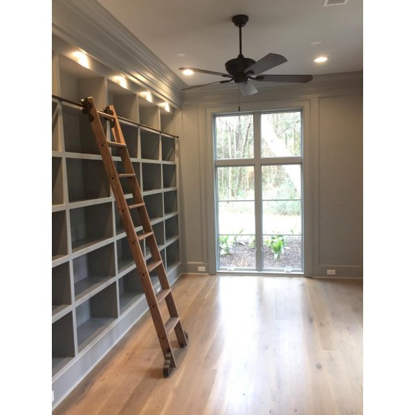 The Quiet Glide rolling ladder is a classy way to add functionality to your library, closet, wine cellar, kitchens, pantries or lofts, anywhere you want to reach those out-of-the-way places. With the Quiet Glide rolling library ladder, it is all about choice. Quiet Glide provides rolling library ladder hardware kits, rail kits and wood ladder kits. Our rolling library ladder hardware kits come in four finishes, three types of upper guides and three styles of ladder wheels. Our unique ladder rail system is the only library ladder rail kit on the market that offers solid aluminum rails - not hollow tubes. The Quiet Glide rolling ladders are made from the metal-work to the steam-bent handrails. All the parts on a Quiet Glide rolling library ladder are machined or manufactured by American Craftsman. Our installation guide will help you choose the design and products for your application.
