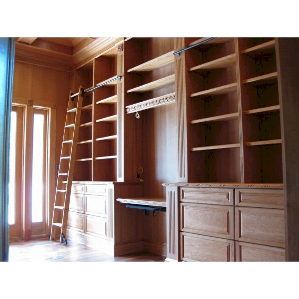 The Quiet Glide rolling ladder is a classy way to add functionality to your library, closet, wine cellar, kitchens, pantries or lofts, anywhere you want to reach those out-of-the-way places. With the Quiet Glide rolling library ladder, it is all about choice. Quiet Glide provides rolling library ladder hardware kits, rail kits and wood ladder kits. Our rolling library ladder hardware kits come in four finishes, three types of upper guides and three styles of ladder wheels. Our unique ladder rail system is the only library ladder rail kit on the market that offers solid aluminum rails - not hollow tubes. The Quiet Glide rolling ladders are made from the metal-work to the steam-bent handrails. All the parts on a Quiet Glide rolling library ladder are machined or manufactured by American Craftsman. Our installation guide will help you choose the design and products for your application.