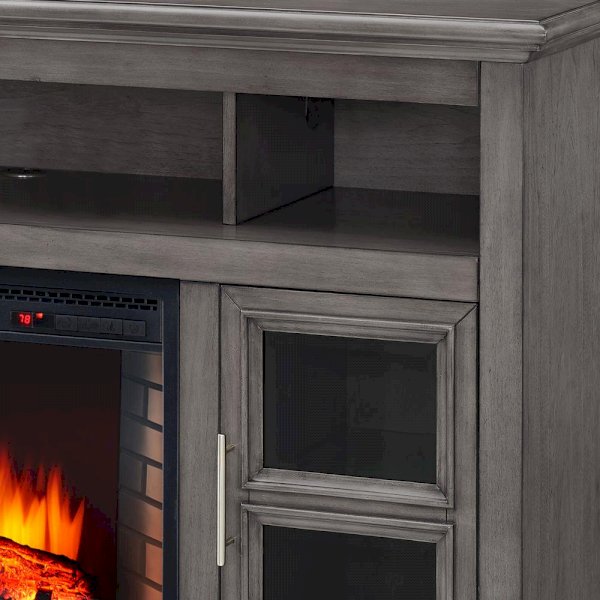 The Glendale media fireplace combines functionality with fine furniture styling. With it's sleek design it accommodates TV's up to 65 in. as well as DVD players and other media components. The side cabinets provide ample storage and easy access. Built in wire management system eliminates the hassle of messy wires and is easily accessible through magnetic back. This electric fireplace heats up to 400 sq. ft. with 4,600 BTUs of fan forced air heat and comes equipped with a 8 stage timer and 13 thermostatic temperature adjustments. The LCD control panel displays your settings, and then locks them into memory. Control the climate from anywhere in the room with a full function remote control.