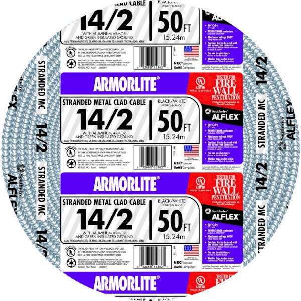 14/2 x 50 ft. Stranded CU MC (Metal Clad) Armorlite Cable