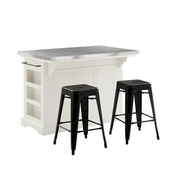 Coventry White Drop Leaf Kitchen Cart with X-Back Stools