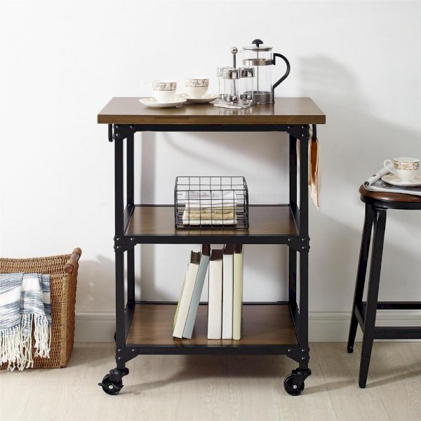 Gladis Rustic Antique Oak/Black Multifunction Cart