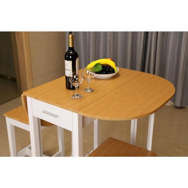 3-Piece White Kitchen Island Breakfast Bar Set with Casters and Drop Down Island Table with 2-Stools