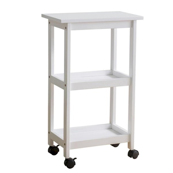 White Kitchen Cart With Drawers and Pull-Out Tray