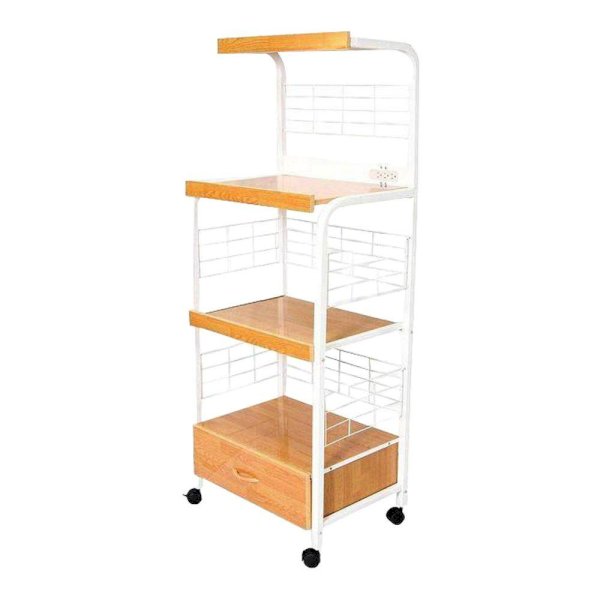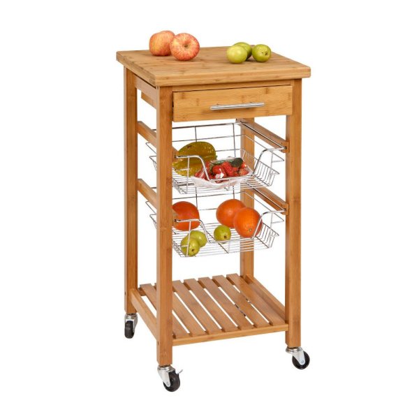 SpaceMaster Rolling Bamboo Kitchen Cart with Metal Storage Racks and 1 Drawer