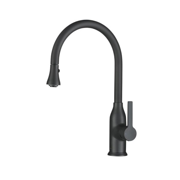 Everton Gooseneck 1.8 GPM CalGreen Single-Handle Pull-out Sprayer Kitchen Faucet in Matte Black