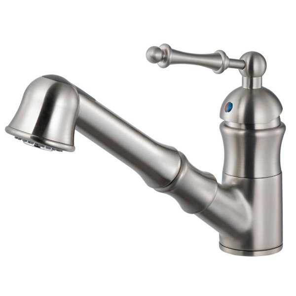 Contemporary Single-Handle Pull-Out Sprayer Kitchen Faucet in Lead-Free Brushed Nickel
