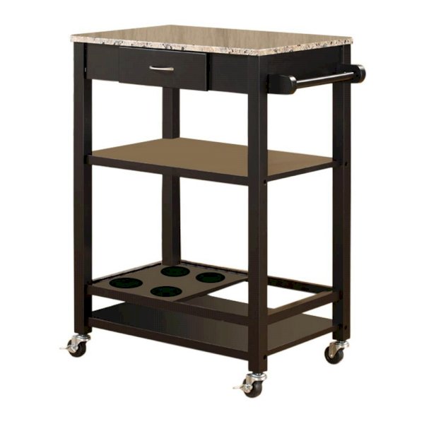 Black / Marble Top Serving Bar Cart with Towel Bar