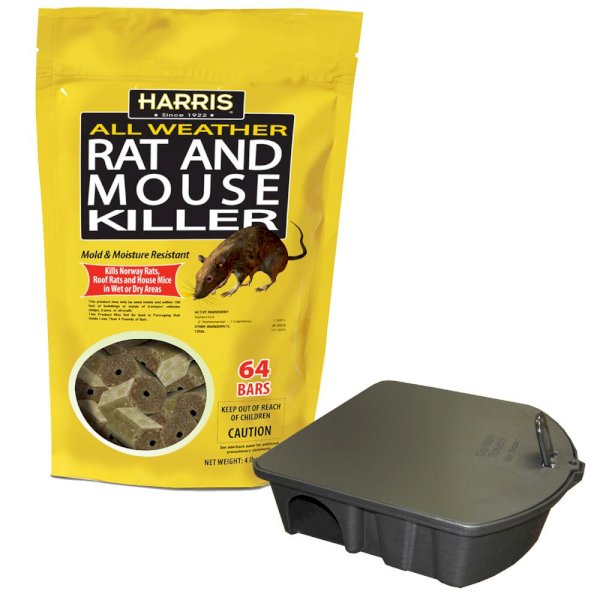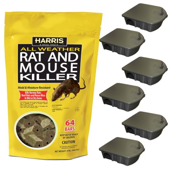4 lbs./64 Bars All Weather Rat and Mouse Killer and 6 Locking Rat and Mouse Refillable Bait Stations
