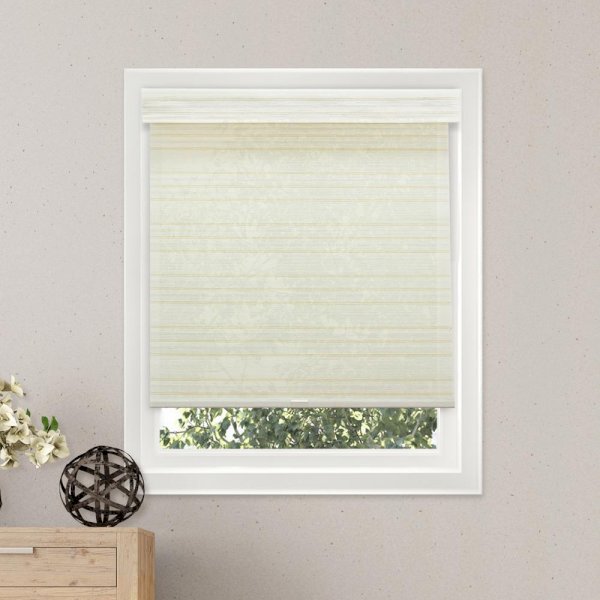 Cut-to-Size Natural Cordless Light Filtering Layered Roller Shade 23 in. W x 72 in. L