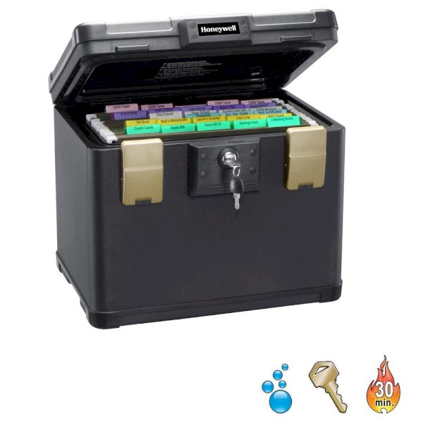 When disaster strikes, protecting your most important documents and irreplaceable data will ease and expedite your recovery process. This fireproof chest is excellent for the safe storage of letter and A4 size hanging file folders along with many types of digital media. The Honeywell 1106 0.60 cu. ft. Molded Fire and Waterproof File Chest has a 30-Minute UL Fire protection rating up to 1550°F/843°C. A waterproof seal and special latch design protects contents against water damage caused by Mother Nature and/or accidents for 24 hours, even when completely submerged under 1 m. Perfect size to fit into any area in your home or office. Honeywell safes are backed by an industry leading 7-year limited warranty. In the event of a fire the contents will be protected but the chest itself will likely be damaged. Our Lifetime After-Fire Free Replacement guarantee means that we will provide you with a new replacement chest if it is damaged in a fire.